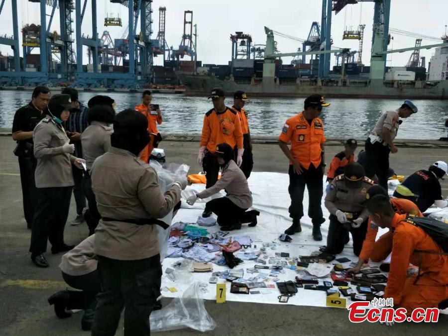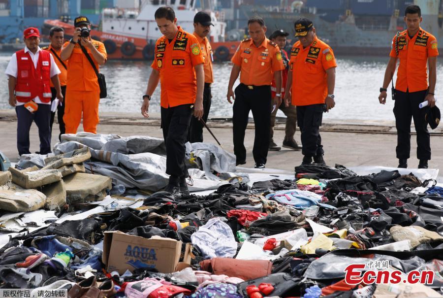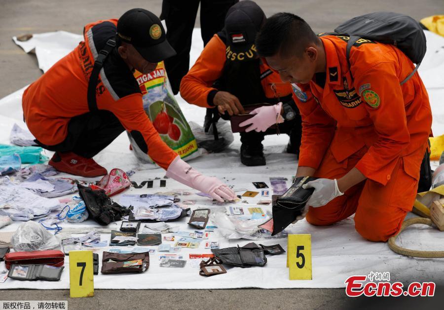 Rescue workers lay out recovered belongings believed to be from the crashed Lion Air flight JT610 at Tanjung Priok port in Jakarta, Indonesia, Oct. 30, 2018. Indonesia on Tuesday stepped up a search for an airliner that plunged into the sea with all 189 aboard feared dead, deploying underwater beacons to trace its black box recorders and uncover why an almost-new plane crashed minutes after take-off. (Photo: China News Service/Lin Yongchuan)