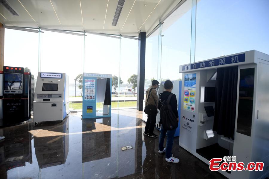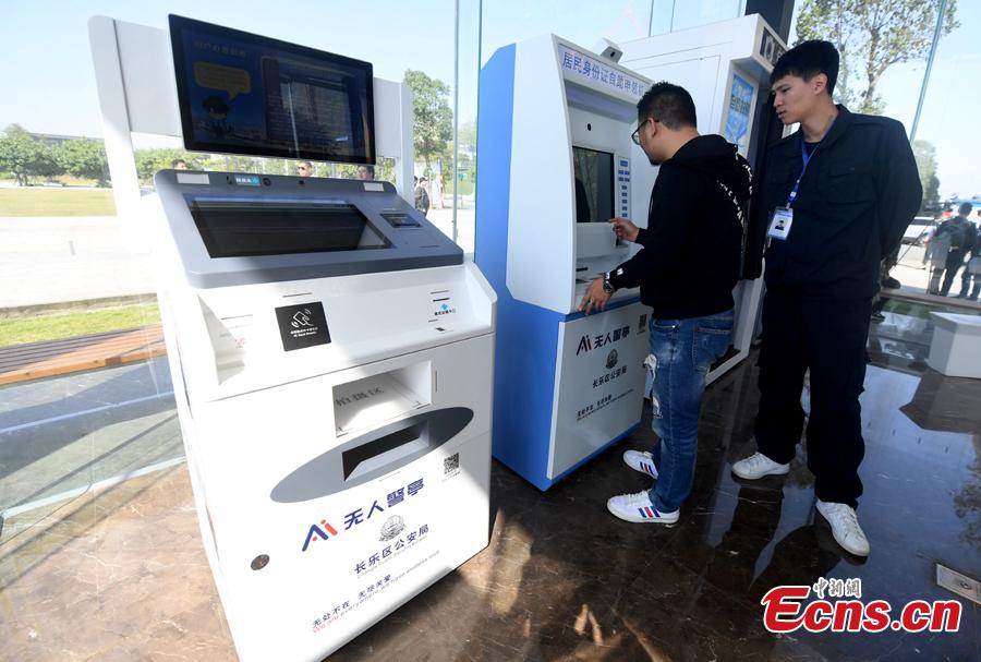 An unmanned police service station opens in Changle District, Fuzhou City, Fujian Province, Oct. 30, 2018. The station, empowered by artificial intelligence and facial recognition, allows people to process on their own a number of civil affairs that usually require the presence of police officers, including matters related to IDs, residence permits, entry and exit procedures, and traffic fines, using the automatic machines available there. (Photo: China News Service/Zhang Bin)