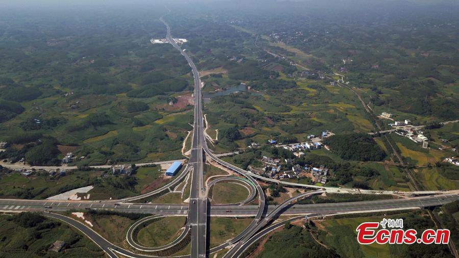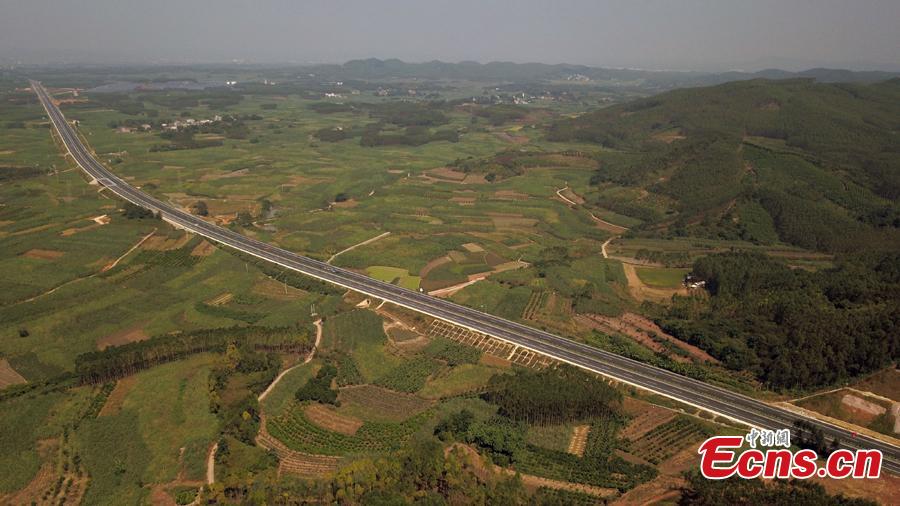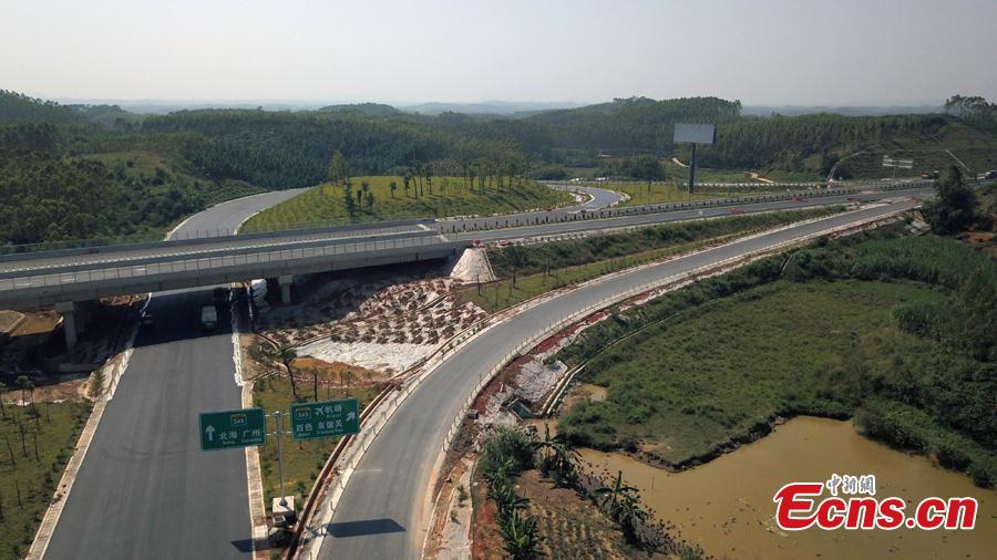 Photo taken from the air shows an expressway linking Nanning Wuxu International Airport with Datang Town of Nanning City, Southwest China’s Guangxi Zhuang Autonomous Region, Oct. 30, 2018. The expressway will improve transportation networks among the region’s three seaports and Friendship Pass near the border between China and Vietnam when it opens next month. (Photo: China News Service/He Qiudi)
