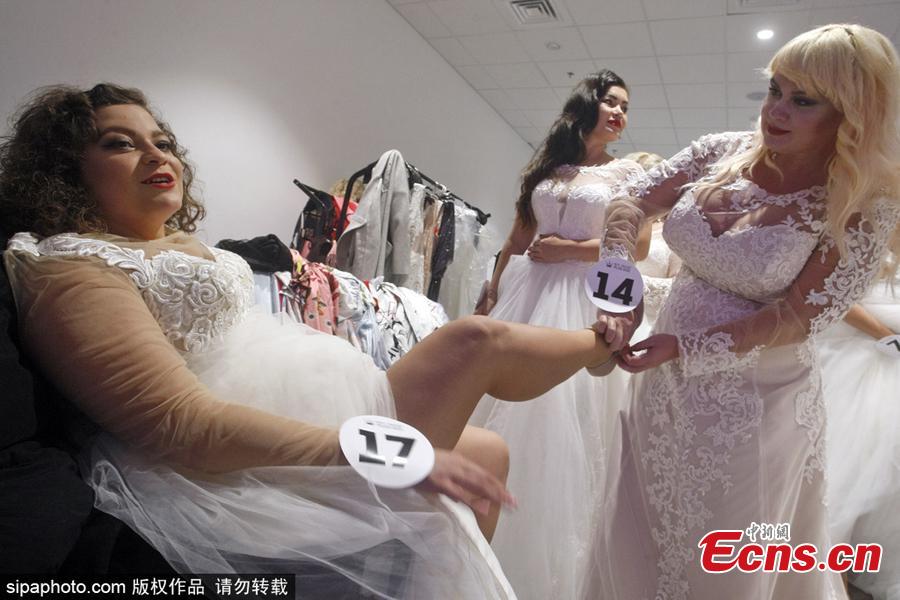 A contestant prepares backstage during the ''Miss Ukraine Plus Size'' beauty pageant in Kiev, Ukraine, 29 October, 2018. 22 female contestants competed in the contest, the first held in Ukraine, which aims to challenge modern inclusive standards of beauty. The winner of the contest will represent Ukraine to the "Miss World Plus Size 2018" beauty pageant, which will take place in the Philippines on November 07-11. (Photo/Sipaphoto)