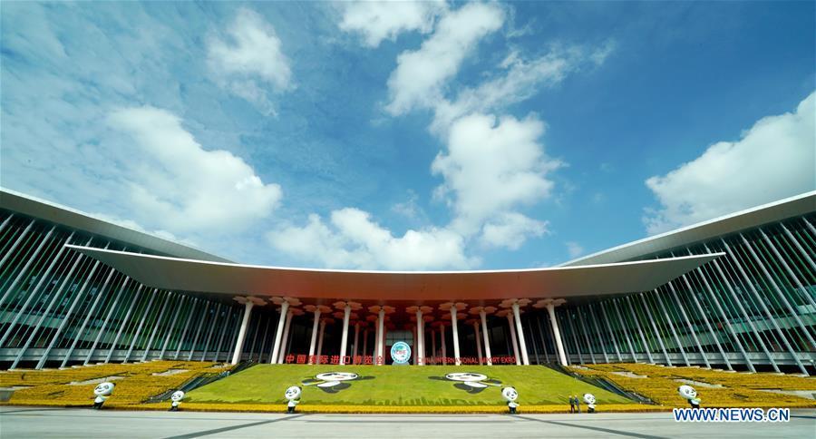 Photo taken on Nov. 2, 2018 shows flowers at the National Exhibition and Convention Center (Shanghai), the main venue of the upcoming first China International Import Expo (CIIE), in Shanghai,east China. The expo is scheduled to be held here from Nov. 5 to 10. (Xinhua/Fang Zhe)