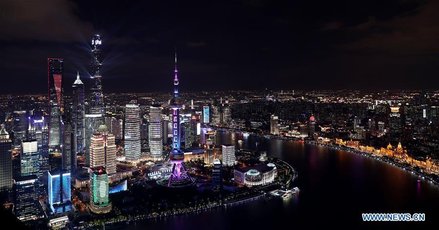 Photo taken on Nov. 1, 2018 shows the night view of Shanghai, east China. The first China International Import Expo (CIIE) will be held on Nov. 5-10 in Shanghai. (Xinhua/Fang Zhe)
