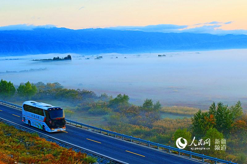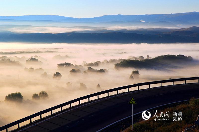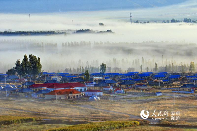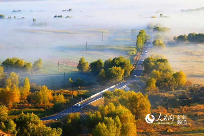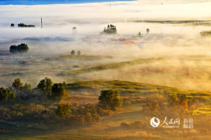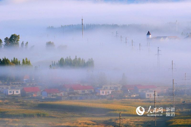 Thin mist falls over the Burqin of Altay region in Xinjiang Uygur Autonomous Region, making the small county look like a wonderland. (Photo/people.cn)