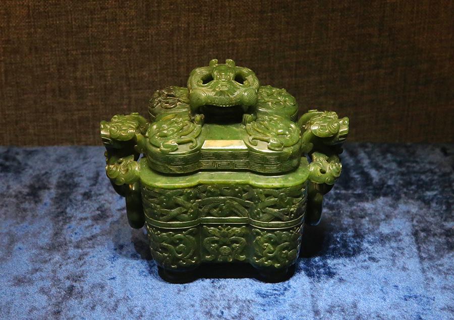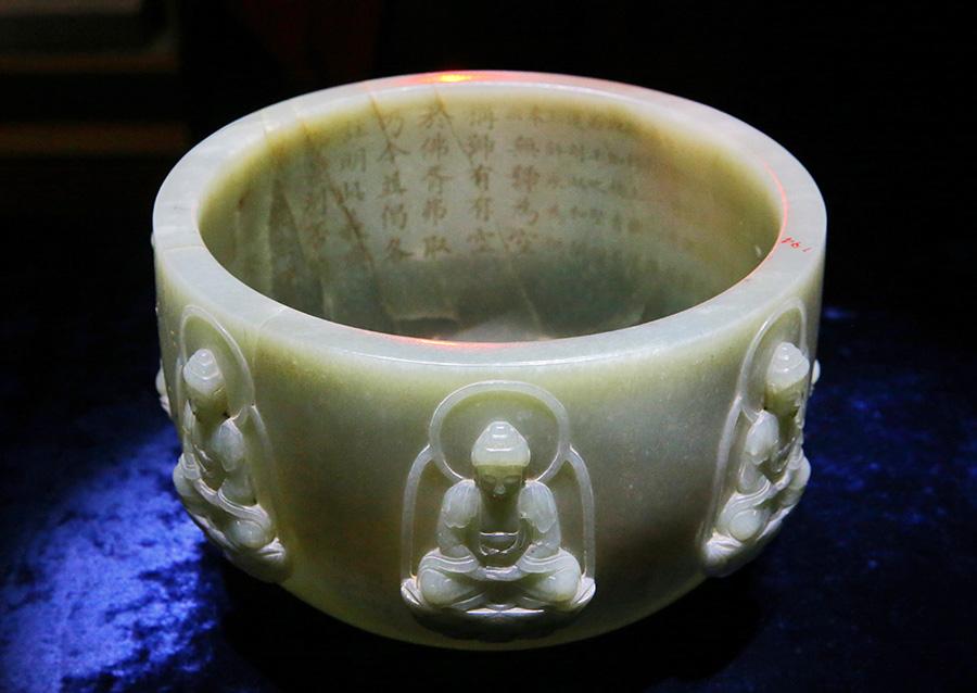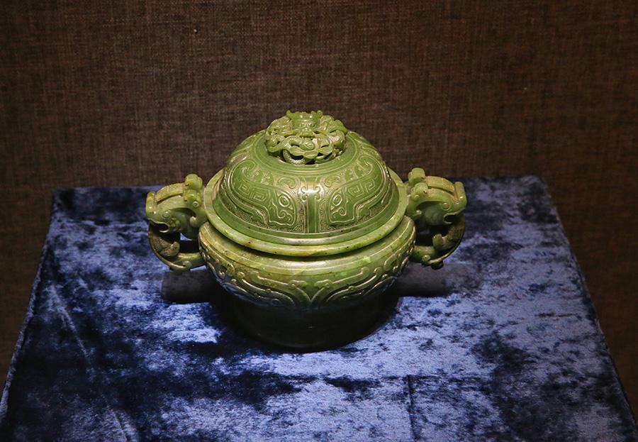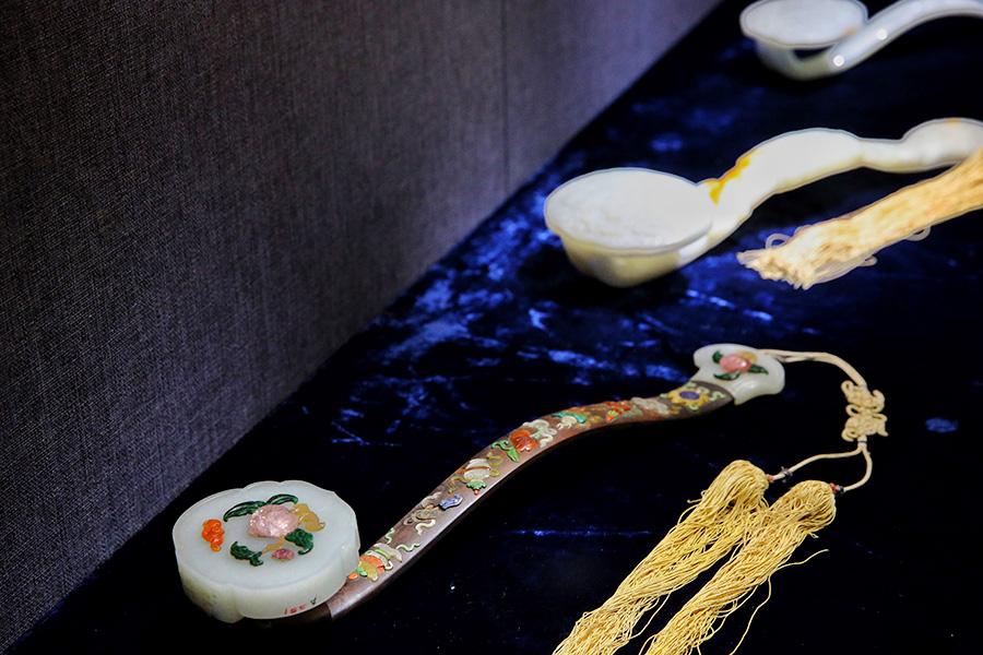 A selection of 93 jades from the holdings of the Summer Palace and the Institute of Qing History of Renmin University are on show at the Summer Palace's Dehe Garden through Dec. 8. (Photo/China Daily)