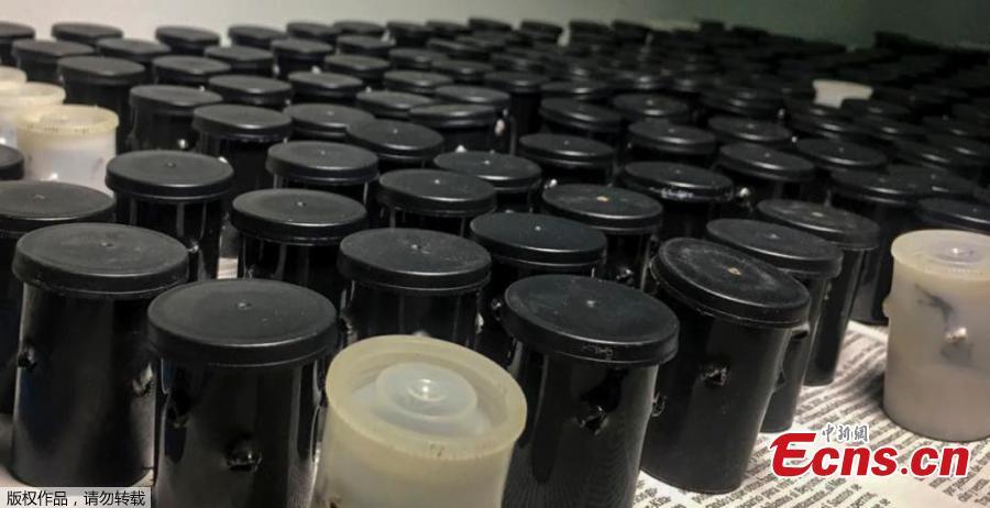 Police in Colombia's capital have recovered 216 poisonous frogs from an airport bathroom and authorities say smugglers planned to illegally send them for sale in Germany. Authorities announced Wednesday they'd found the frogs hidden in small film containers that were buried in a bag filled with clothes. The rescued amphibians include endangered species like the dark orange and black Lehmann's poison frog. The creatures can fetch $2,000 each on the illegal wildlife market. They are sought after by collectors and others hoping to obtain their venom. (Photo/ Agencies)