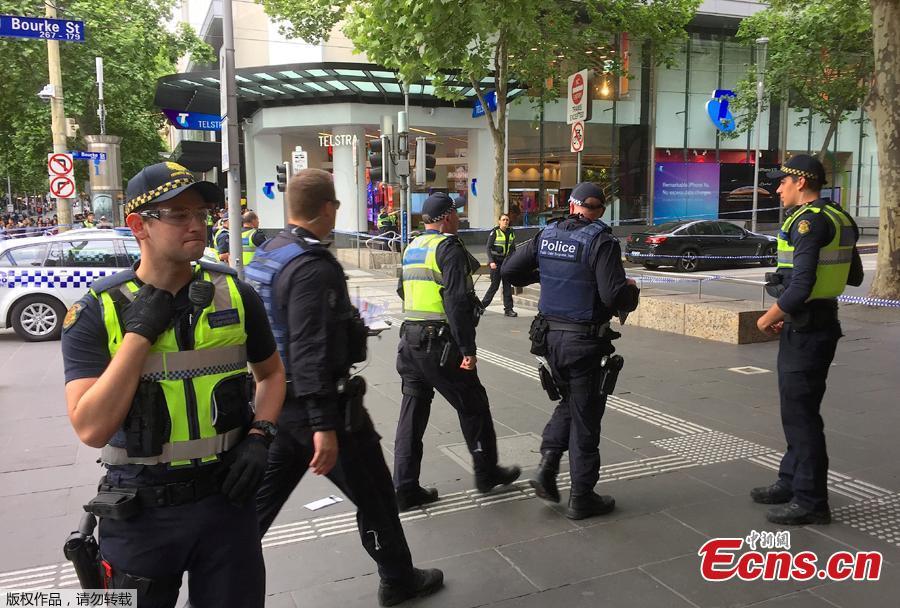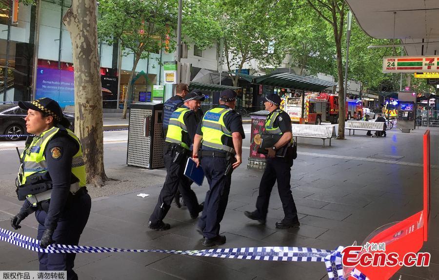 Policemen block members of the public from walking towards the Bourke Street mall in central Melbourne, Australia, November 9, 2018. Australian police reported multiple people were hurt in a rush hour stabbing incident. (Photo/Agencies)