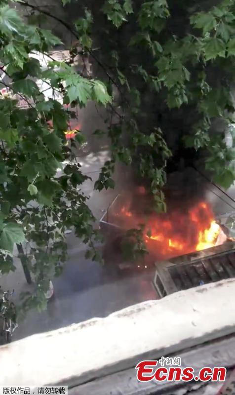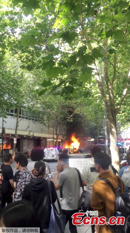 A burning car is seen near the Bourke Street mall, in Melbourne, Australia, November 9, 2018 in this picture grab obtained from social media video. Australian police reported multiple people were hurt after a man set a car on fire and allegedly stabbed a number of people in Melbourne's Bourke St. (Photo/Agencies)