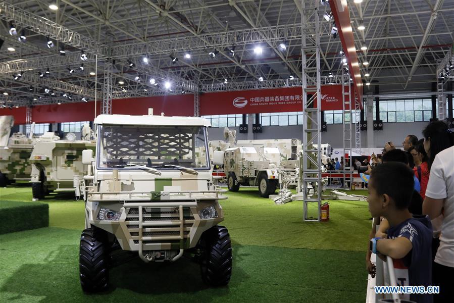 People visit the 12th China International Aviation and Aerospace Exhibition (Airshow China) in Zhuhai, south China's Guangdong Province, Nov. 10, 2018. Saturday marks the second of three public days of the Airshow China. (Xinhua/Liu Fang)