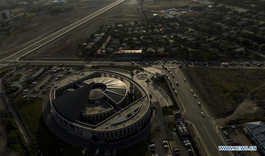 Photo taken on Nov. 10, 2018 shows the aerial view of the International Convention Center in Port Moresby, Papua New Guinea. The Asia-Pacific Economic Cooperation (APEC) meetings will run from Nov. 12 to 18 in Port Moresby, Papua New Guinea. (Xinhua/Bai Xuefei)