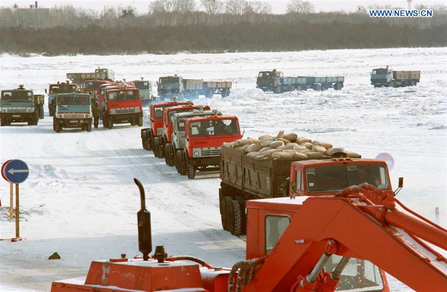 File photo shows machines and materials being carried to China from Russia across the frozen Songhua River in northeast China. (Xinhua/Zheng Zhensun)