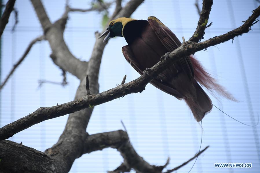 Photo taken on Nov. 11, 2018 shows a bird-of-paradise in Port Moresby, Papua New Guinea. Leaders from the Asia-Pacific economies are gathering in Port Moresby, the capital of Papua New Guinea for the Asia-Pacific Economic Cooperation (APEC) Leaders' Week on Nov. 12-18. (Xinhua/Lui Siu Wai)