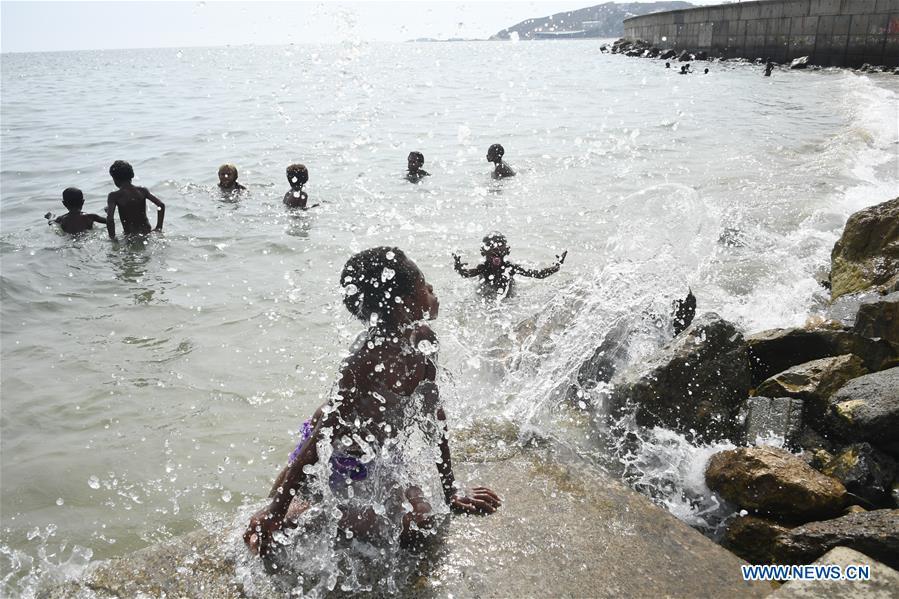 Children play on the sea shore in Port Moresby, Papua New Guinea, on Nov. 11, 2018. Leaders from the Asia-Pacific economies are gathering in Port Moresby, the capital of Papua New Guinea for the Asia-Pacific Economic Cooperation (APEC) Leaders' Week on Nov. 12-18. (Xinhua/Lui Siu Wai)