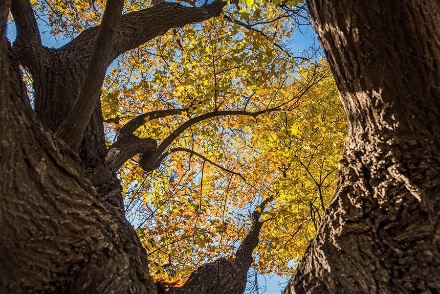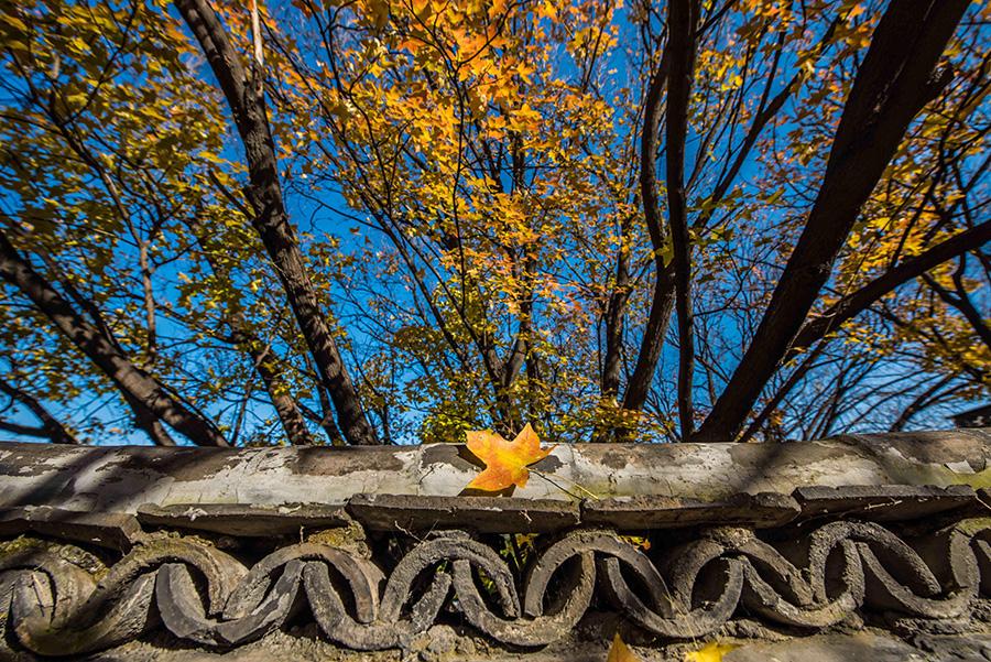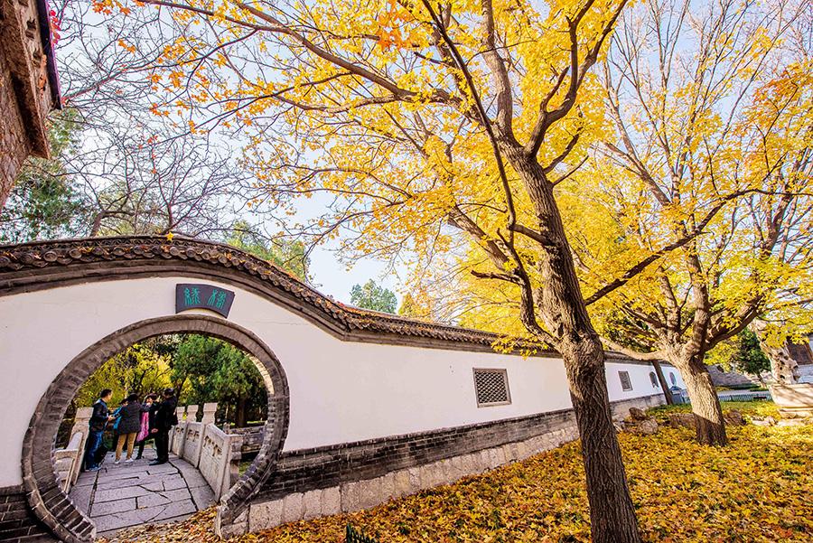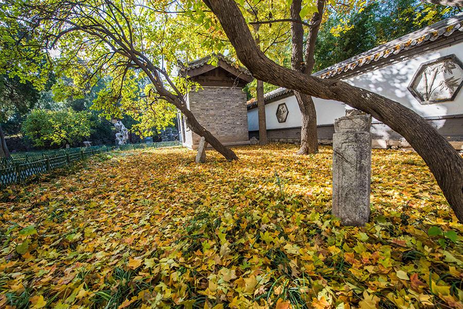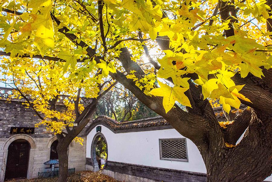 Colorful tree leaves and ancient-style buildings have made the early wintry scene in the old town area of ancient town Qingzhou, Weifang city, Shandong Province, an interesting mix. (Photo/Asianewsphoto)