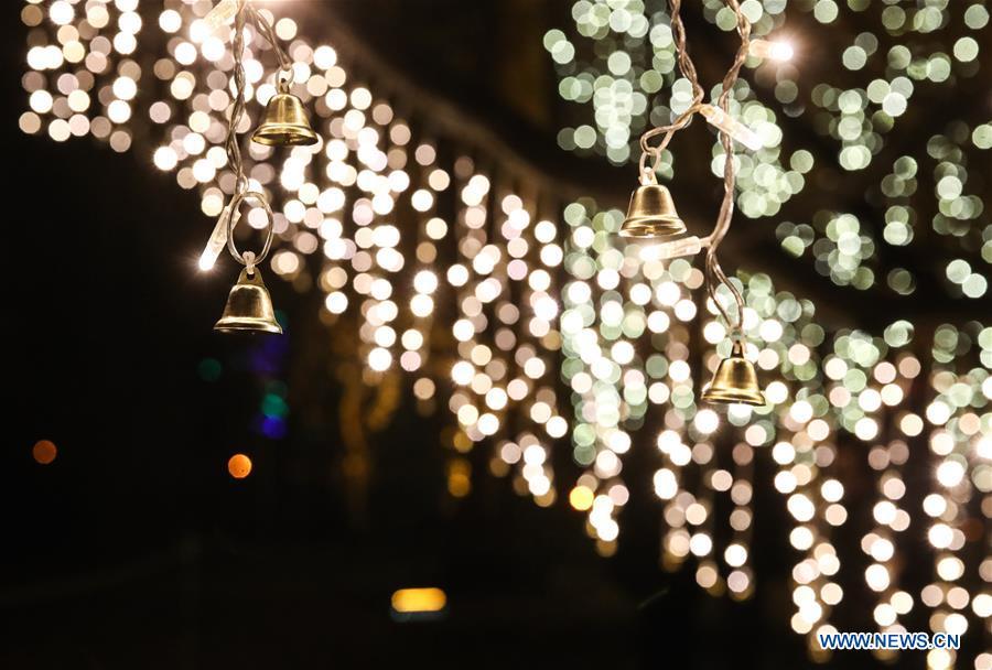 Photo taken on Nov. 15, 2018 shows a view of Christmas bells and light decorations during the "Christmas Garden Berlin" light show at Berlin-Dahlem Botanical Garden in Berlin, capital of Gremany. The "Christmas Garden Berlin" kicked off on Thursday at Berlin-Dahlem Botanical Garden in southwestern Berlin and will last until Jan. 6, 2019. (Xinhua/Shan Yuqi)