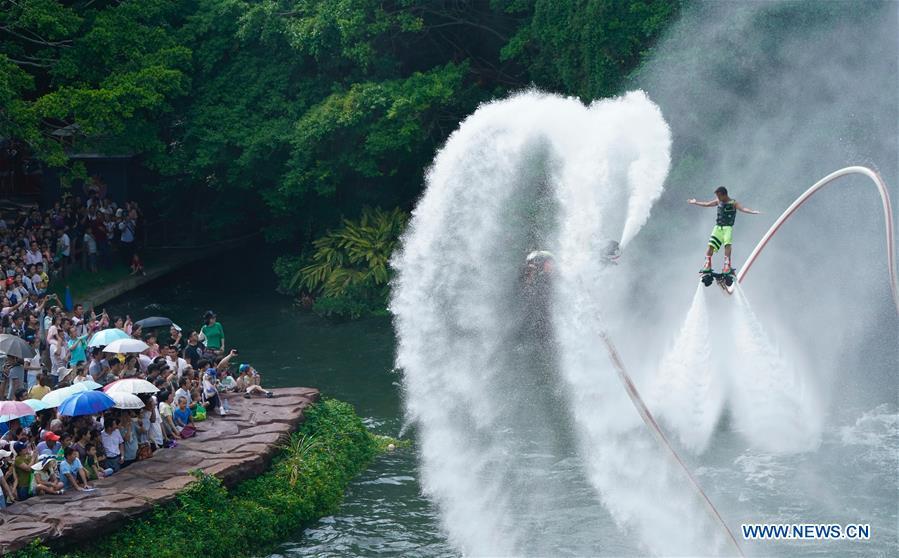 Visitors watch performance at a theme park in Shenzhen City of south China's Guangdong Province, Oct. 4, 2017. China is slated to become world's largest theme park market by 2020, when the number of tourists is expected to exceed 230 million, according to a fresh report by U.S. engineering firm AECOM. The number of tourists to Chinese theme parks have seen an average annual growth of 13 percent in the past decade, and reached 190 million in 2017. The number is expected to keep the double digit growth in the following years, according to the report. The report attributes the rapid growth to Chinese consumers' rising income that sparks greater demands on leisure activities, as well as more convenient public transportation systems. (Xinhua/Mao Siqian)
