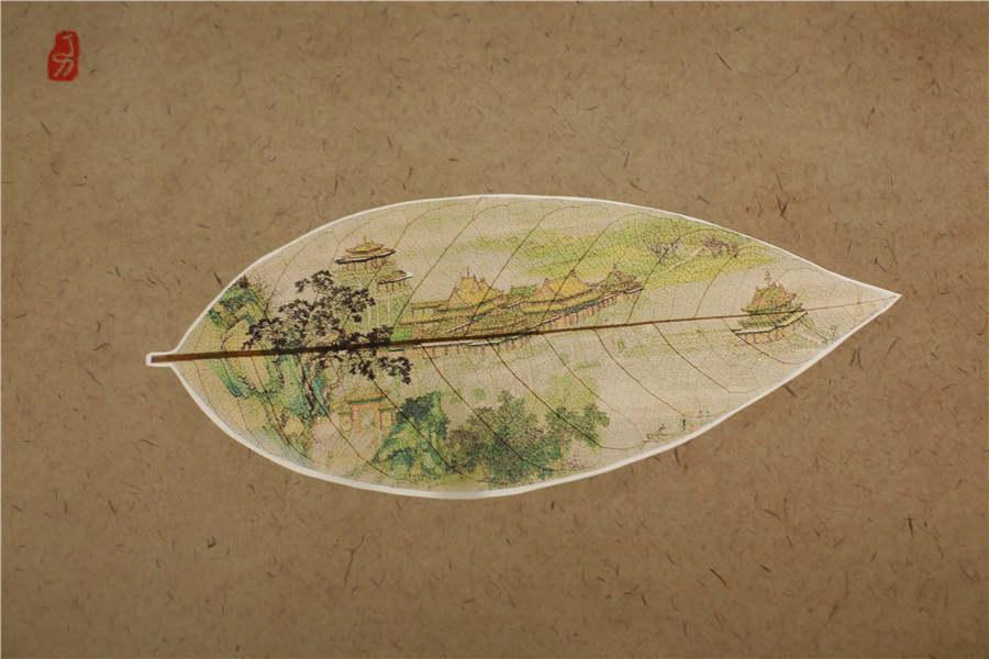 Leaf painting has a history of more than 2,000 years in China. A 27-year-old man Ding Li, from Xianning city of Hubei Province has devoted a dozen years to learning leaf art, and fuses ancient tattooing techniques into his creations. Ding has spent one year creating the ancient painting Along the River During the Qingming Festival which is painted on 10 pieces of michelia alba leaves.