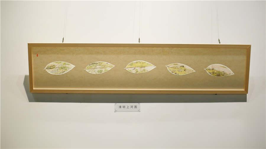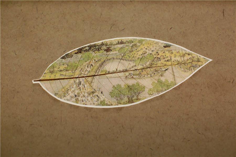 A section of Ding Li's leaf painting Along the River During the Qingming Festival. (Photo provided to chinadaily.com.cn)