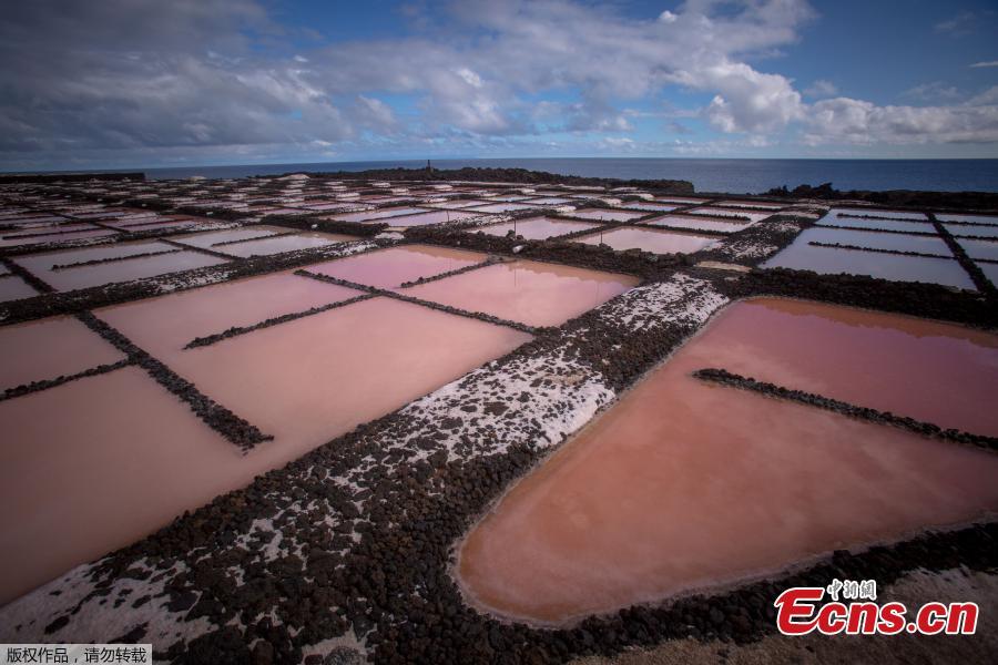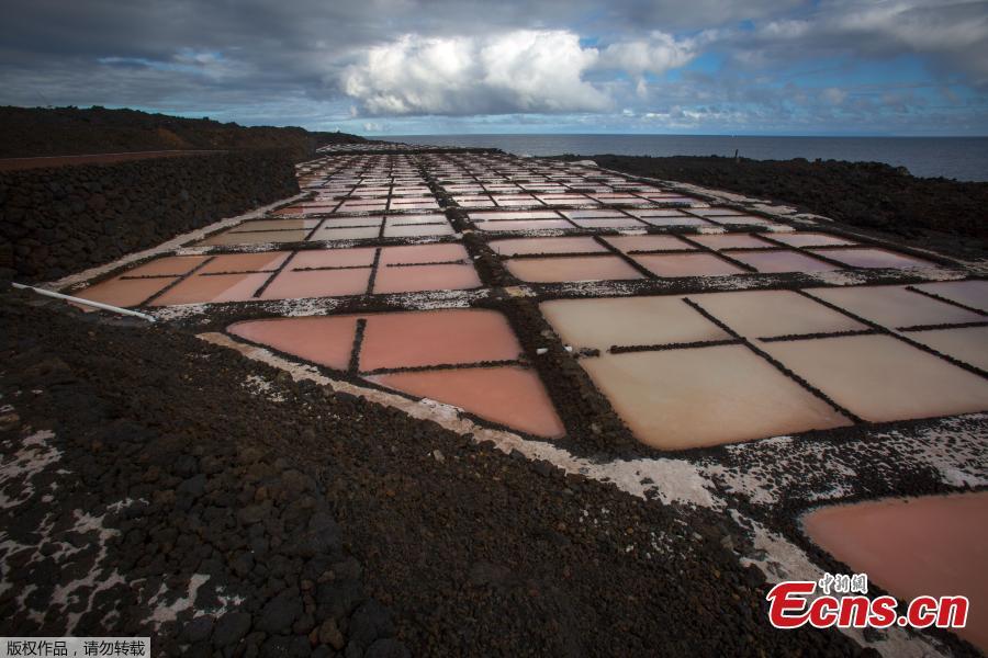 A picture shows salt pans at the Salinas de Fuencaliente, south of the island of Las Palmas in Spain on November 26, 2018. Las Salinas de Fuencaliente is an exploitation of 35,000 square metres of high quality sea salt near the Teneguia volcano range.(Photo/Agencies)
