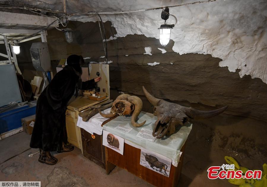 Rozalia Ivanova, administrator of the Museum of the History of Permafrost Studies, checks the thermometer in a gallery beneath the Melnikov Permafrost Institute in the eastern Siberian city of Yakutsk in Russia on November 26, 2018. (Photo/Agencies)