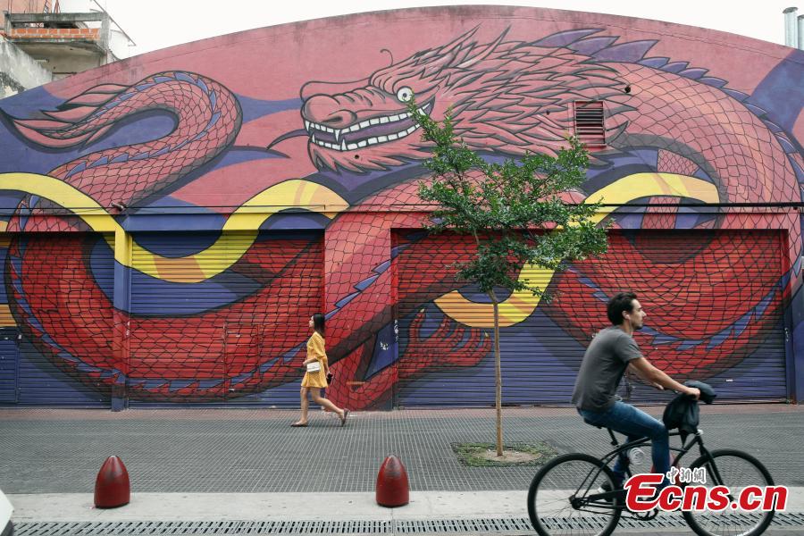 Image of a Chinese dragon is seen marked on a wall of a shop at the Chinatown in Buenos Aires, capital of Argentina. The 13th G20 summit, under the theme of Building Consensus for Fair and Sustainable Development, will be held in the South American country from Friday to Saturday. (Photo: China News Service/ Sheng Jiapeng)