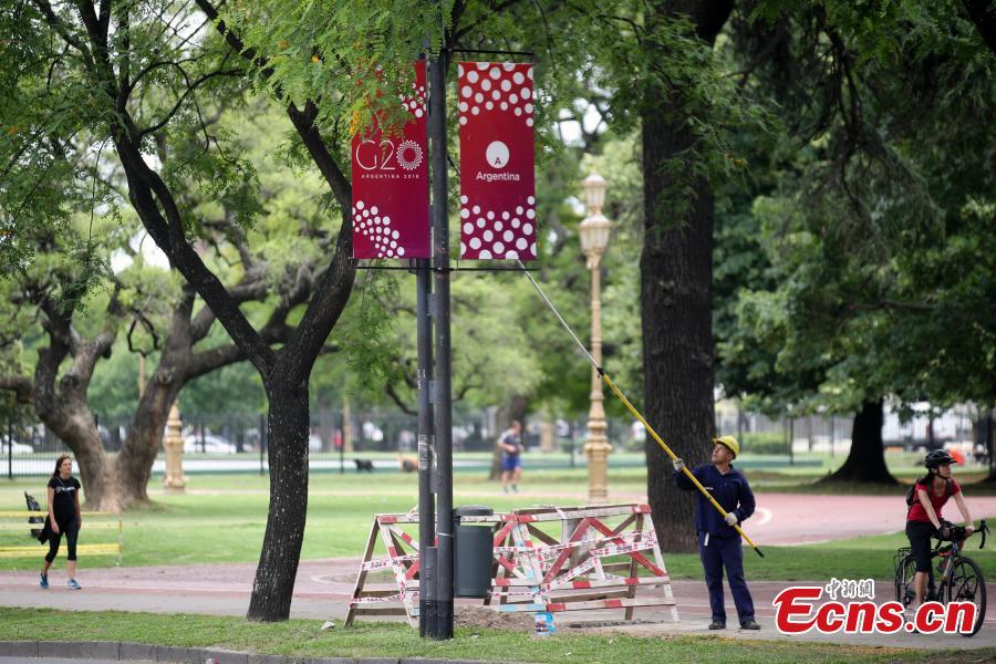 Photo taken on Nov. 27, 2018 shows banners of the G20 summit in Buenos Aires, Argentina. The 13th G20 summit, under the theme of Building Consensus for Fair and Sustainable Development, will be held for the first time in a South American country from Friday to Saturday. (Photo: China News Service/ Sheng Jiapeng)
