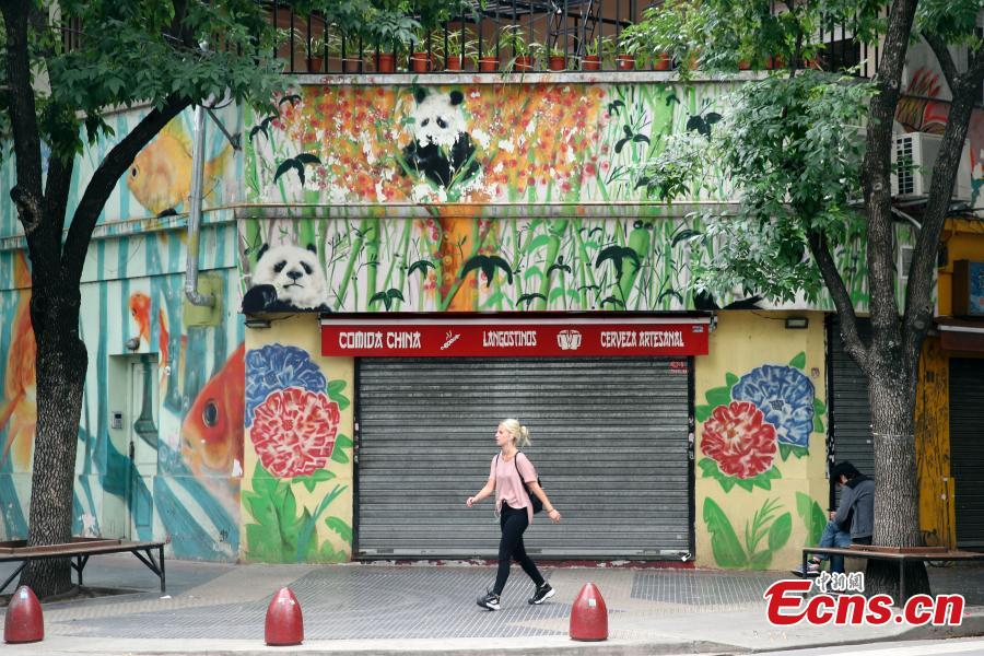 A girl walks in front of a shop with images of pandas marked on its wall at the Chinatown in Buenos Aires, capital of Argentina on November 27, 2018. The 13th G20 summit, under the theme of Building Consensus for Fair and Sustainable Development, will be held in the South American country from Friday to Saturday. (Photo: China News Service/ Sheng Jiapeng)