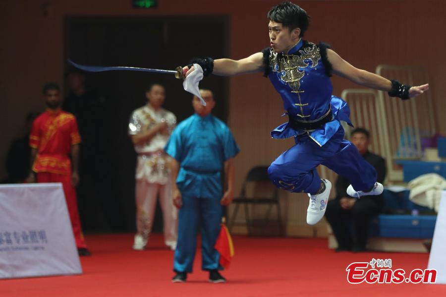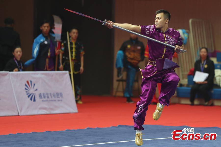 An athlete competes at the first Asian Traditional Wushu (Kungfu) Championship in Nanjing, East China’s Jiangsu province on November 29, 2018. The event attracts athletes from 12 countries and regions including China, Brunei, India, Japan, and Kazakhstan to take part in. (Photo: China News Service/ Yang Bo)