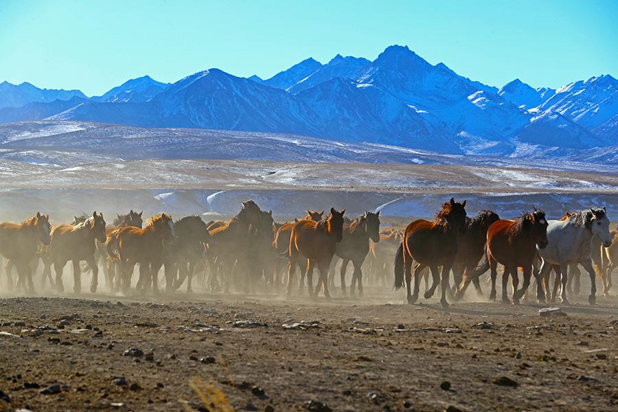 In the early winter, thousands of horses gallop around the Shandan Military Horse Farm, which is located in the middle of Hexi Corridor, Northwest China's Gansu Province. The farm ? one of the oldest and largest horse farms in the world - covers a total area of about 2,200 square kilometers and can be traced back to the Western Han Dynasty (206 BC-AD 24).