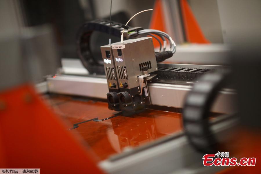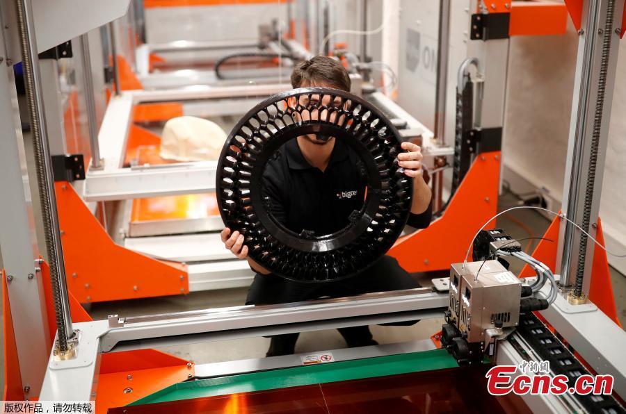A 3D printer of manufacturer BigRep, which developed the nearly completely 3D printed e-motorcycle NERA, is pictured in Berlin, Germany, December 3, 2018. (Photo/Agencies)
