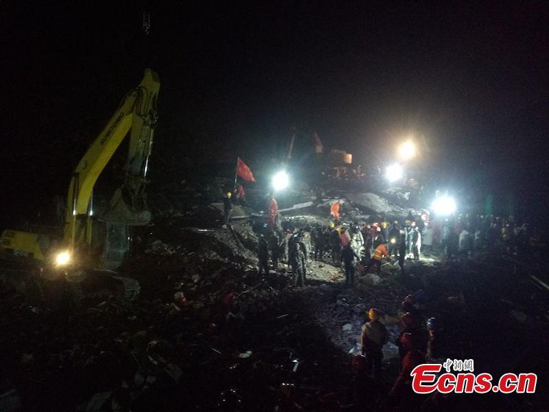 Rescuers race against time pulling buried people out of debris after a landslide topped three houses in Xuyong county, Sichuan province, on Sunday. (Photo: China News Service/ Su Zhongguo)