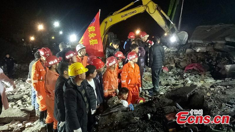 Eight people have been pulled out of the debris of a landslide that toppled three houses Sunday afternoon in Southwest China's Sichuan province. Three died en route to hospital and the other five were under emergency treatment in hospital, local government said. Twelve people were estimated buried in the landslide that occurred at about 5 pm in Fenshui township in Xuyong county. More than 600 rescuers were racing against the clock to reach more survivors. Of the 12 people, eight were local residents and four were renters, Tang Jie, the county head leading rescue efforts at the scene, told Xinhua.