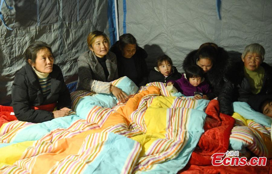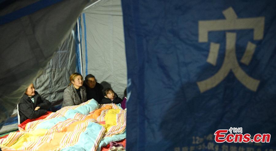 People affected by an earthquake stay at a temporary shelter in Xingwen County, Southwest China’s Sichuan Province, Dec. 17, 2018. A magnitude 5.7 earthquake jolted the county Sunday. As at 5:30 p.m. Sunday, 16 people had been reported injured in the earthquake. (Photo: China News Service/Liu Zhongjun)
