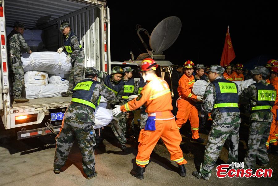 Rescuers help people affected by an earthquake at a temporary shelter in Xingwen County, Southwest China’s Sichuan Province, Dec. 17, 2018. A magnitude 5.7 earthquake jolted the county Sunday. As at 5:30 p.m. Sunday, 16 people had been reported injured in the earthquake. (Photo: China News Service/Liu Zhongjun)