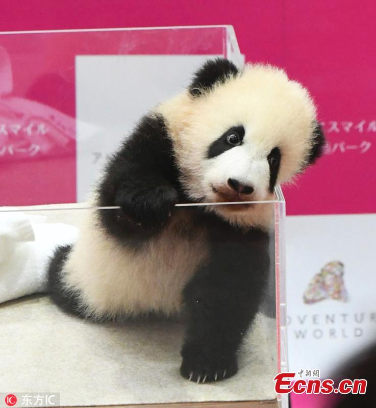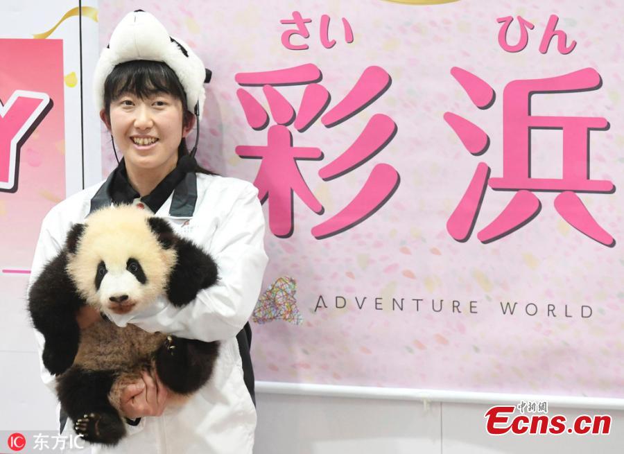 The name of a baby giant panda is announced as "Saihin" at the Adventure World in Shirahama Town, Wakayama prefecture, Japan, Dec. 17, 2018. The female panda was born with only 75-grams-weight in August this year, and has grown to 6,175 grams for 4 months. There were more than 120,000 entries for recruitment of baby panda's name, and it was decided as "Saihin". Visitors can see Saihin with her mother every day from 10 a.m. to 3 p.m. (Photo/IC)