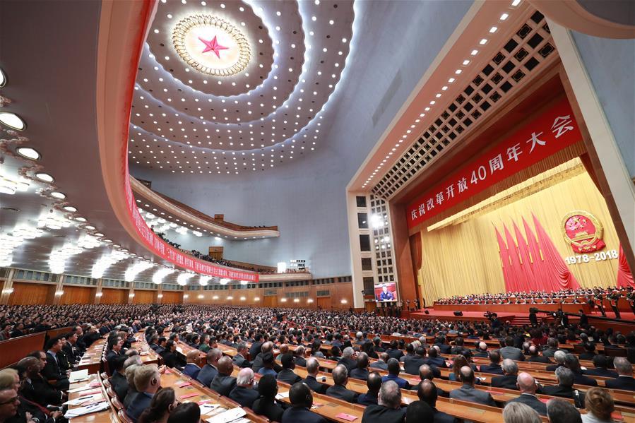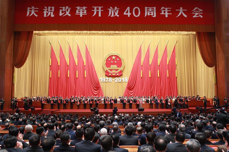 China holds a grand gathering to celebrate the 40th anniversary of the country's reform and opening-up at the Great Hall of the People in Beijing, capital of China, Dec. 18, 2018. (Xinhua/Wang Ye)
