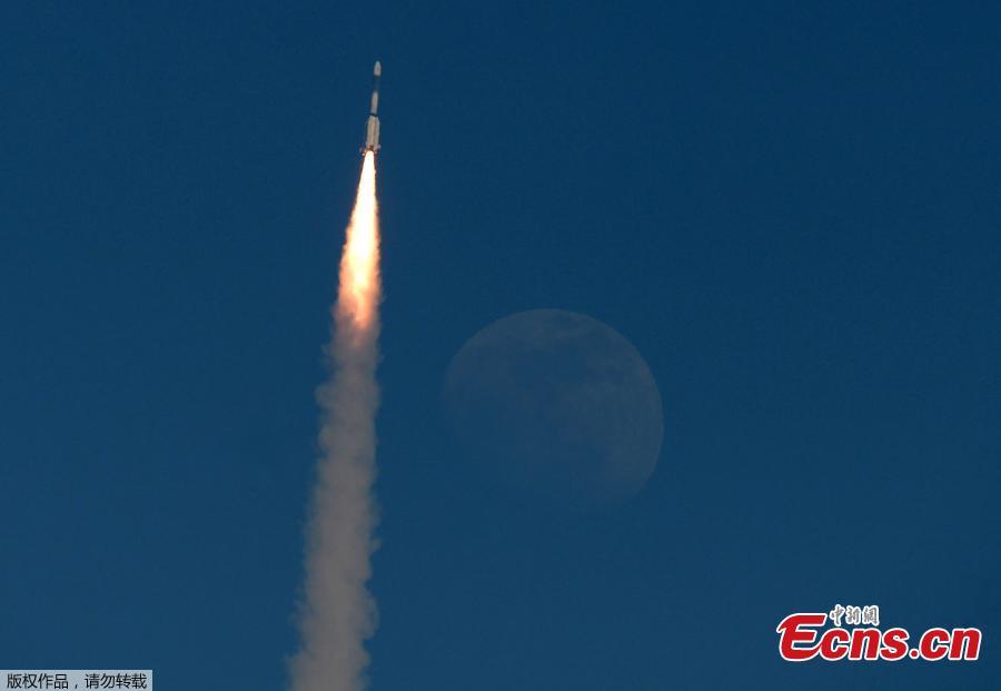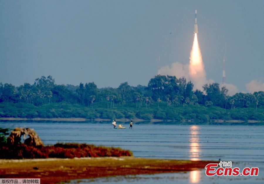 India's Geosynchronous Satellite Launch Vehicle GSLV-F11 carrying GSAT-7A communication satellite blasts off from the Satish Dhawan Space Centre in Sriharikota, India, Dec. 19, 2018. Gsat-7A, built by the Indian Space Research Organisation, is meant for augmenting the existing communication capabilities of satellites used by the Indian Air Force, according to Indian media. (Photo/Agencies)