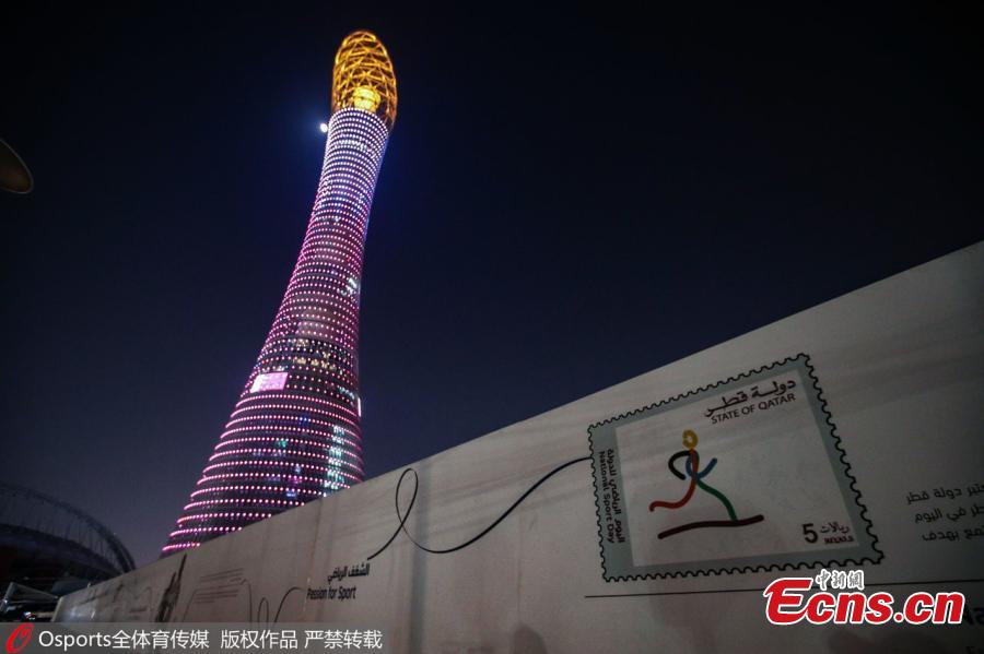 Photo taken on Dec. 20, 2018 shows the Aspire Tower, also known as the Torch Doha, a 300-metre-tall skyscraper hotel located in the Aspire Zone complex in Doha, Qatar. Chinese men's national soccer team players have arrived at the hotel to warm up for the upcoming 2019 AFC Asian Cup. (Photo/Osports)