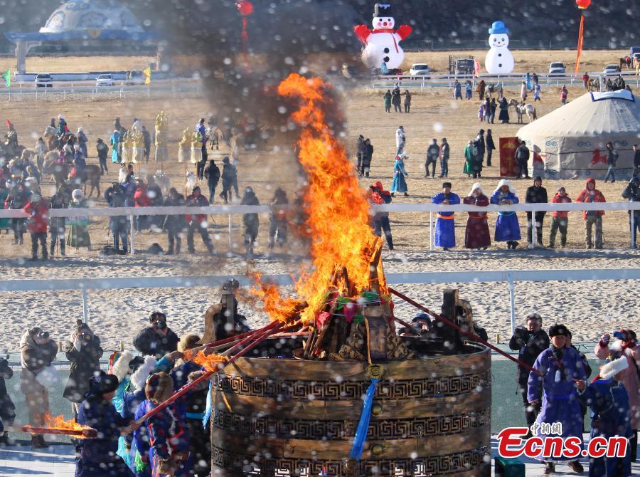 The winter Naadam Fair takes place in Hinggan League, North China’s Inner Mongolia Autonomous Region, Dec. 20, 2018. The term "Naadam" means "entertainment" and "recreation". As the name of the festival suggests, it will feature ethnic Mongolian traditional sporting events. Naadam was inscribed as a national intangible cultural heritage by the State Council in 2006. (Photo: China News Service/Chen Feng)