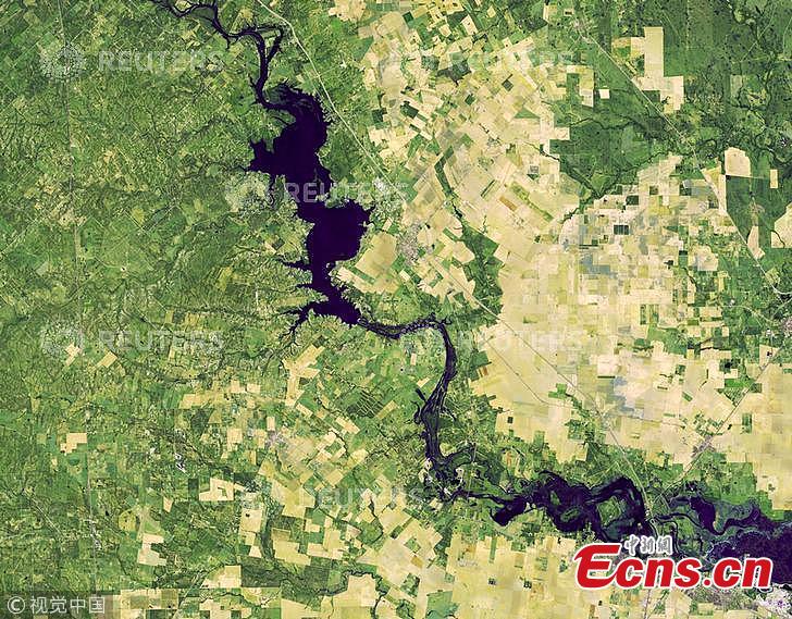 A false-color image from Operational Land Imager (OLI) on the Landsat 8 satellite shows flooding along the Nueces River after a historic amount of rain from the remnants of Hurricane Willa in central Texas, Nov. 1, 2018. (Photo/Agencies)
