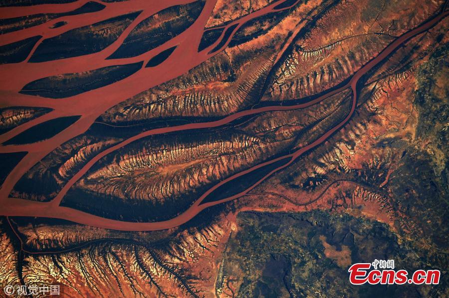 The Betsiboka Estuary in Madagascar, draining into the sea and showing changing landscapes due to decimation of rainforests and coastal mangroves, is seen from the International Space Station, Jul. 11, 2018. (Photo/Agencies)