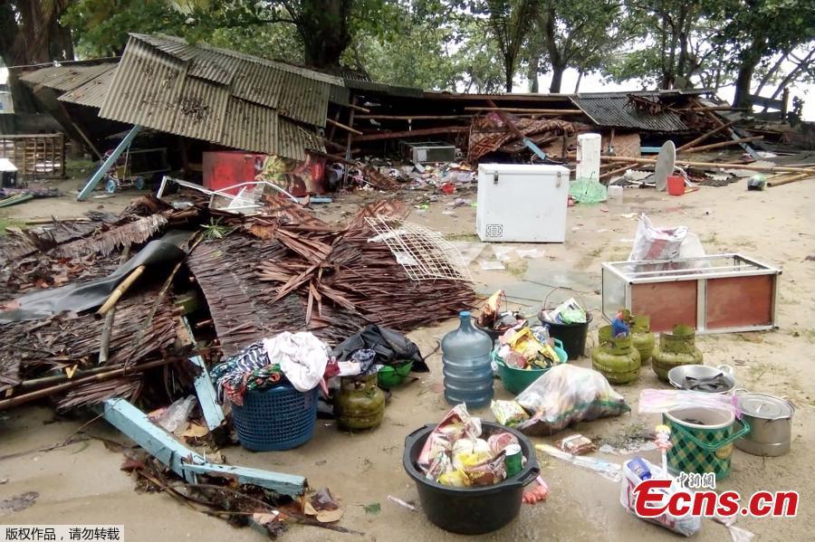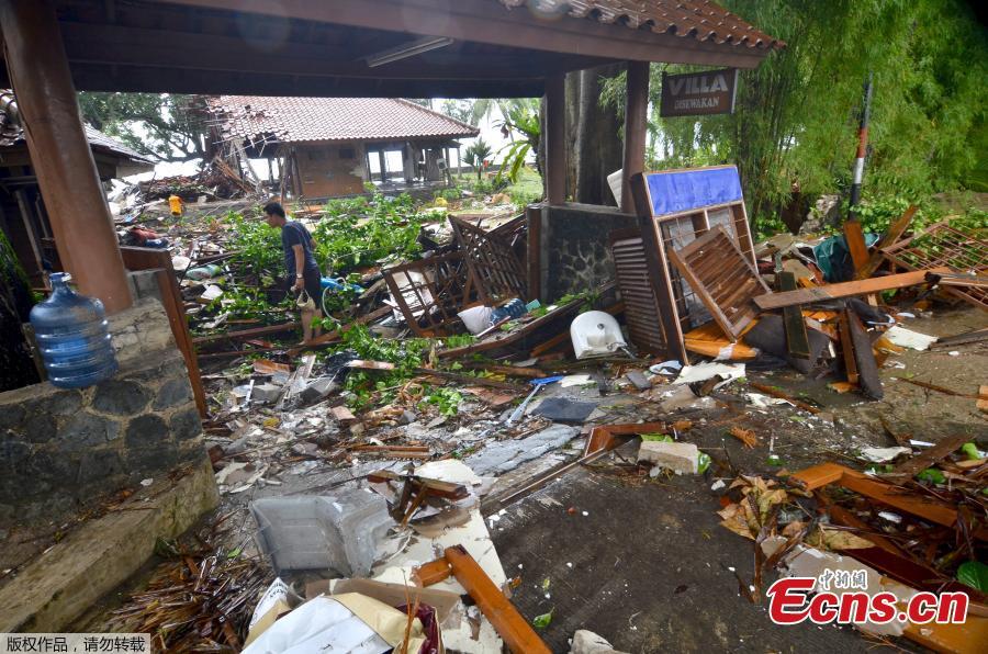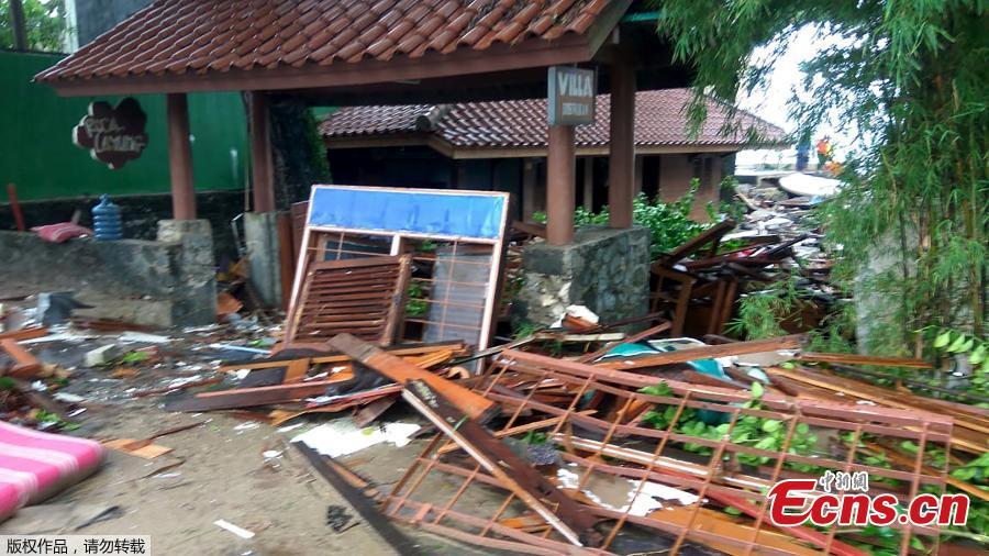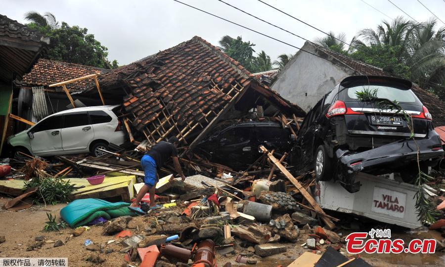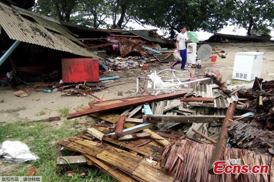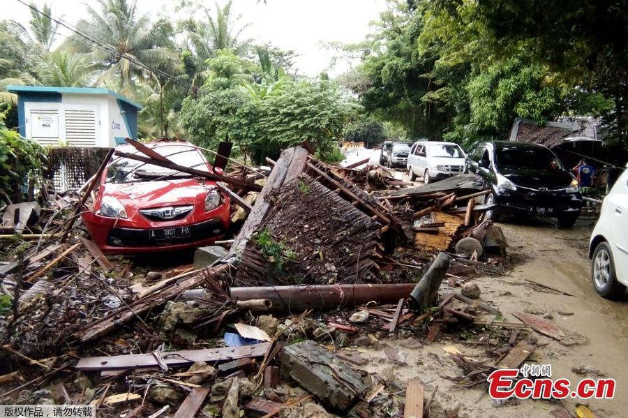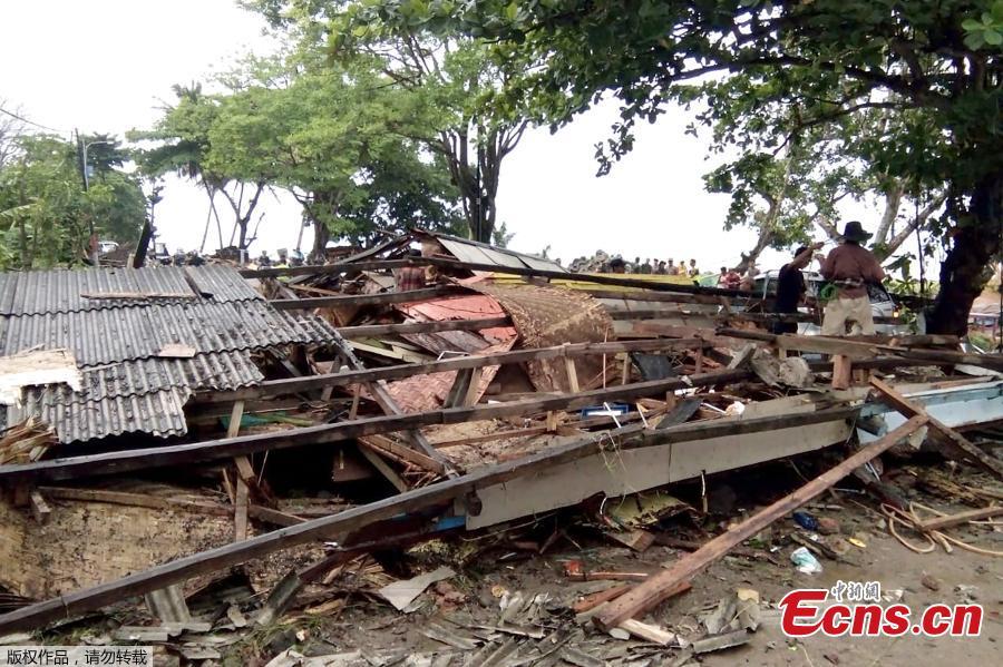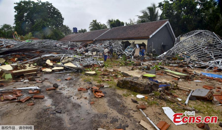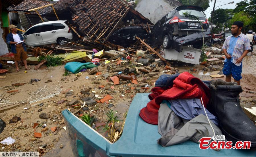 A tsunami killed at least 222 people and injured hundreds on the Indonesian islands of Java and Sumatra following an underwater landslide believed to have been caused by the erupting Anak Krakatau volcano, officials said on Sunday, Dec, 23, 2018. Hundreds of homes and other buildings were heavily damaged when the tsunami struck, almost without warning, along the rim of the Sunda Strait late on Saturday. (Photo/Agencies)
