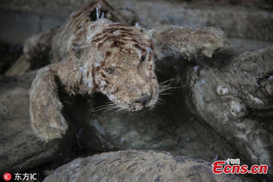 A stuffed animal, which died during the 2014 war, is on display at a zoo in Khan Younis in the southern Gaza Strip. (Photo/Agencies)