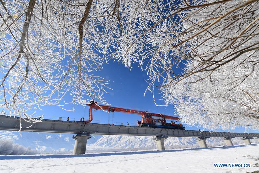 Workers are seen at a construction site of the Yarlung Zangbo River bridge on the Lhasa-Nyingchi section of the Sichuan-Tibet Railway in Gonggar of southwest China's Tibet Autonomous Region, Dec. 22, 2018. The Sichuan-Tibet Railway will be the second railway into southwest China's Tibet Autonomous Region after the Qinghai-Tibet Railway. The line will go through the southeast of the Qinghai-Tibet Plateau, one of the world's most geologically active areas. (Xinhua/Wang Quanquan)