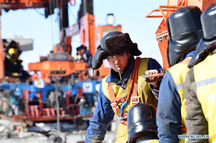 Workers are seen at a construction site on the Lhasa-Nyingchi section of the Sichuan-Tibet Railway in southwest China's Tibet Autonomous Region, Dec. 23, 2018. The Sichuan-Tibet Railway will be the second railway into southwest China's Tibet Autonomous Region after the Qinghai-Tibet Railway. The line will go through the southeast of the Qinghai-Tibet Plateau, one of the world's most geologically active areas. (Xinhua/Purbu Zhaxi)