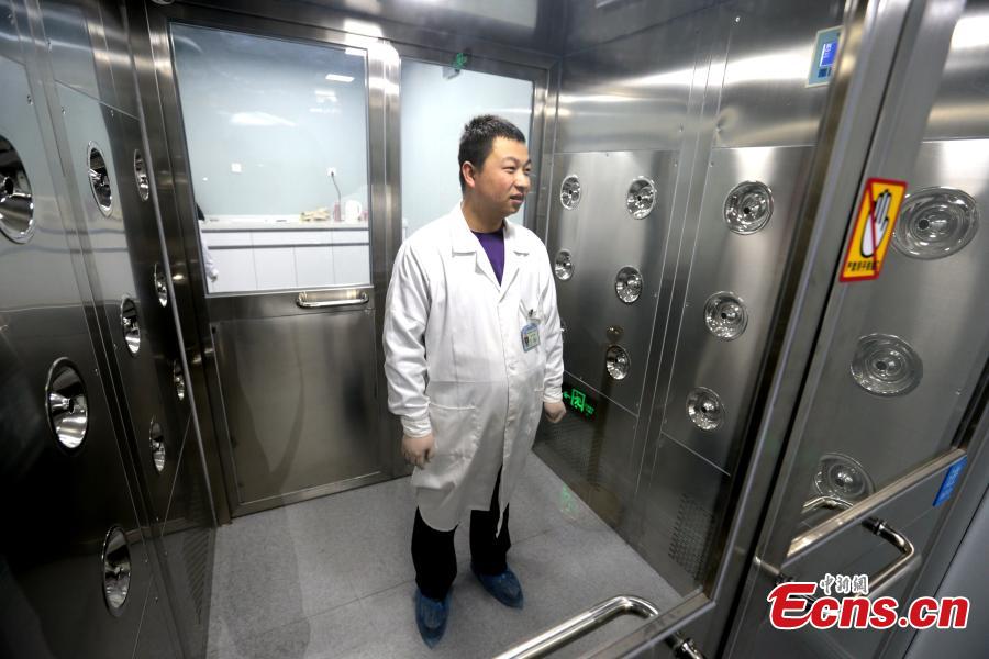 A specialist goes through a series of checks before entering a room where relics undergo restoration at the Shaanxi History Museum in Xi'an, Northwest China's Shaanxi Province, Jan. 16, 2019. Visitors can view the process through a glass window. (Photo: China News Service/Zhang Yuan)