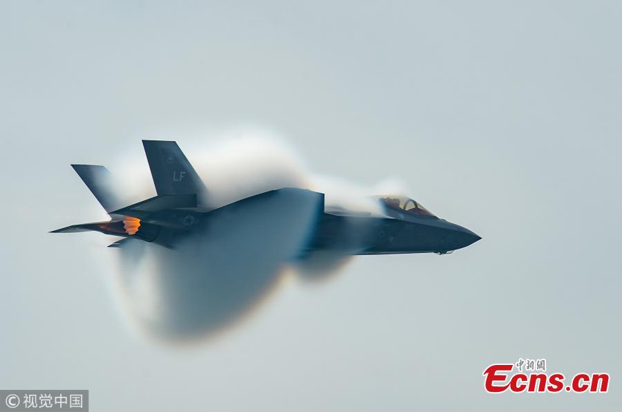 Capt. Andrew “Dojo” Olson, F-35 Heritage Flight Team pilot and commander, performs a high-speed pass during the Canadian International Air Show in Toronto, Sept. 1, 2018. (Photo/VCG)