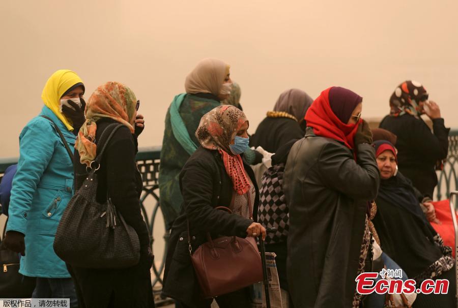Women cover their faces near the River Nile during a sandstorm in Cairo, Egypt, Jan. 16, 2019. Egypt's capital Cairo and some of its port cities were hit by a severe sandstorm, with strong winds and heavy dust forcing the closure of several ports. (Photo/Agencies)