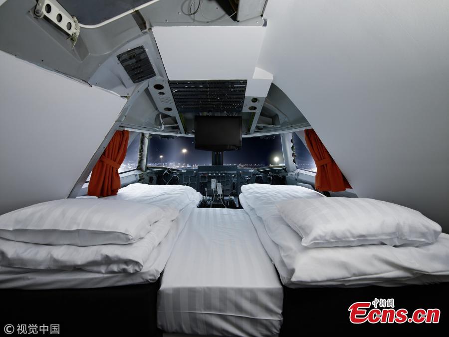A view of the Jumbo Stay, a hostel located inside a decommissioned 747-200 jetliner at Arlanda Airport near Stockholm, Sweden. The airplane, built in 1976, was last operated by Transjet, a Swedish airline that went bankrupt in 2002. The hostel has 76 beds in 33 rooms, according to the official website. (Photo/VCG)