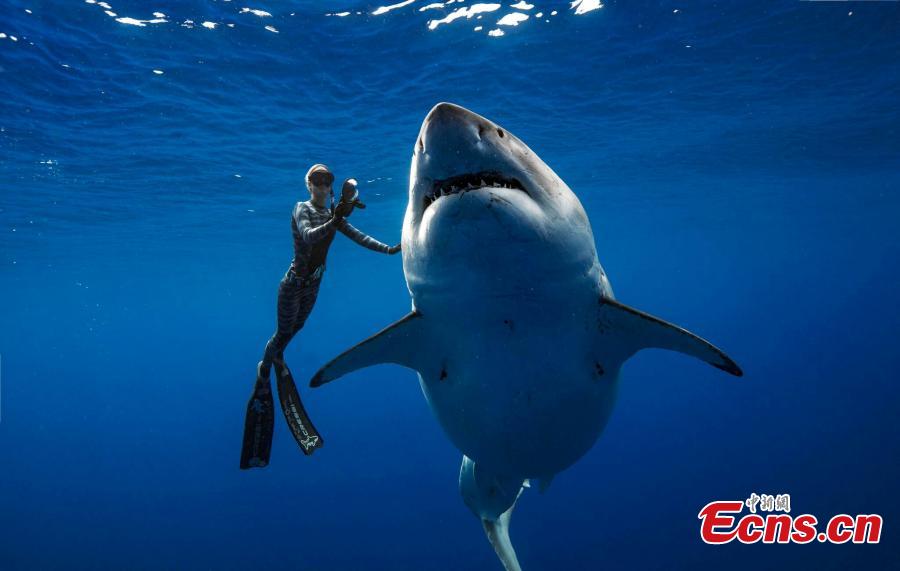 A team of divers has had a close encounter with Deep Blue, one of the biggest great white sharks on record. She is 20 feet long and estimated to be up to 50 years old. One of the divers, Ocean Ramsey, said that they had been filming tiger sharks feeding on the whale when the shark arrived. (Photo/Agencies)