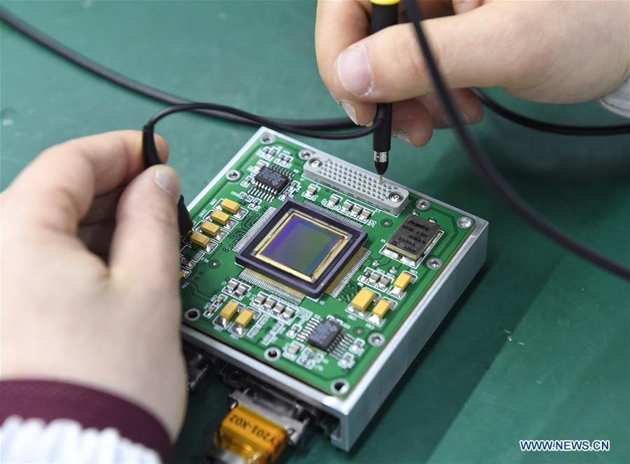Photo taken on Jan. 17, 2019 shows a sample of the topographical camera installed on the lander of the Chang'e-4 probe in Chengdu, southwest China's Sichuan Province. The topographical camera installed on the lander of the Chang'e-4 probe is responsible for both taking colorful high-resolution images on the lunar surface and monitoring the lunar rover Yutu-2. China's Chang'e-4 lunar probe, comprising a lander and a rover, landed on the far side of the moon on Jan. 3, 2019. (Xinhua/Liu Kun)